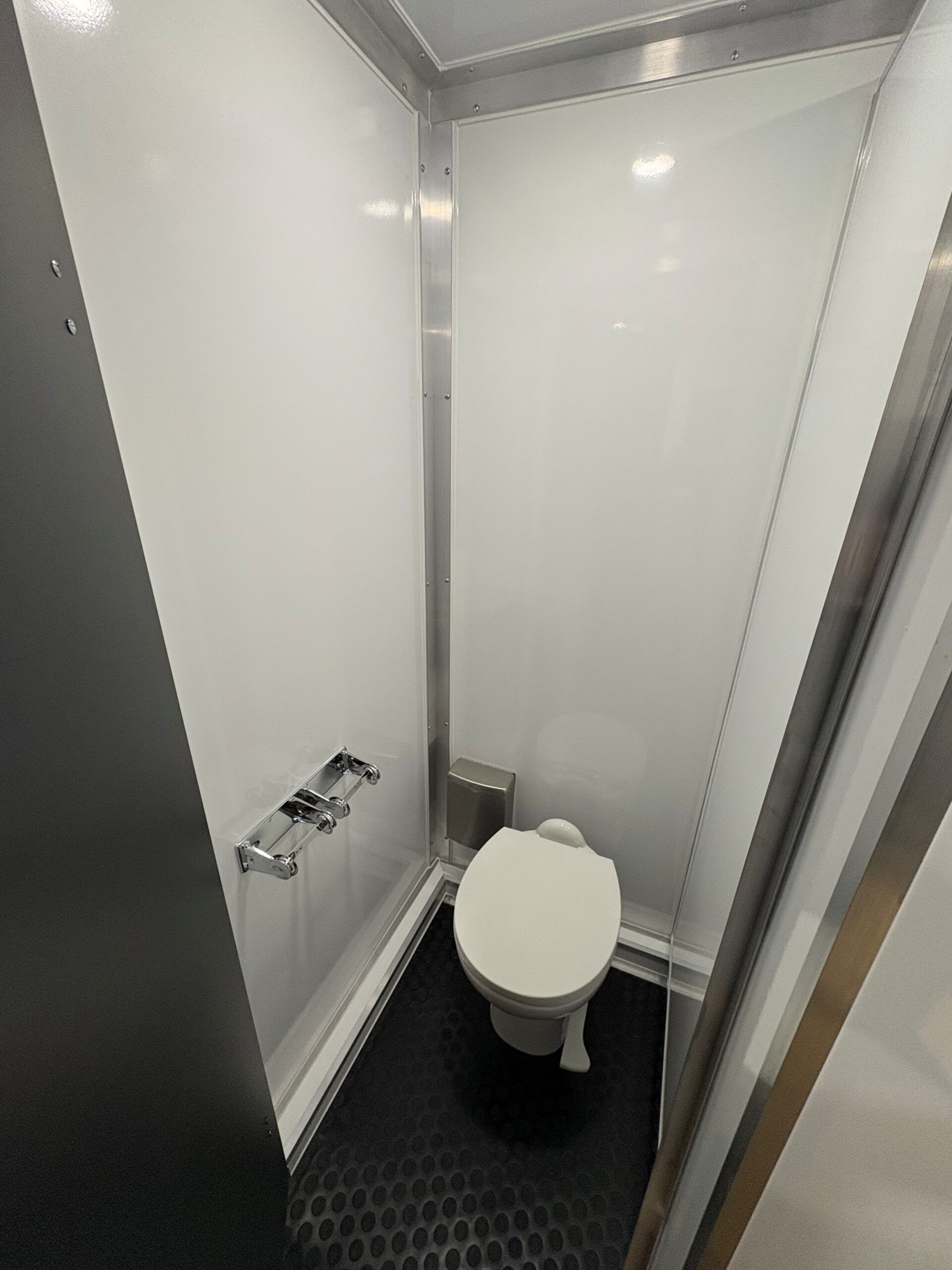 Multiple private stalls in a single trailer unit serve more users efficiently and reduce wait times.